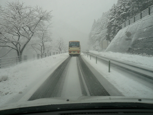 流石に雪がヤバそうだったので、スタッドレスタイヤを履いた車を用意しての出陣。