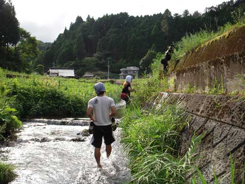 道も無く、目の前にあるのは急な山の斜面と川(笑)