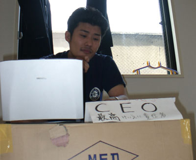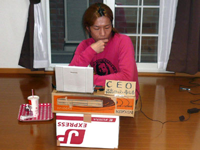(右)山口事務所でのボクの仕事机。(完全に師匠のパロディっす(笑))