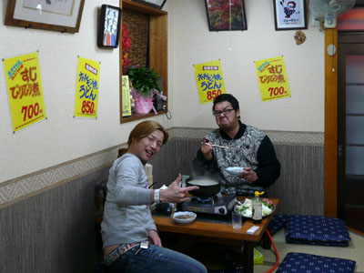 その帰りに鍋(水炊き)を鉄板焼きのお店でつつきました(笑)